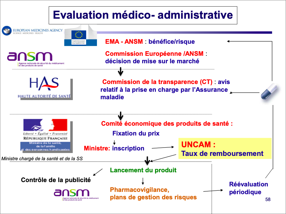 Solution Sibylle_c Posted April 15, 2020 Solution Posted April 15, 2020 Salut ! ( @Aligot a été plus rapide mais je poste quand même pour certaines précisions). 1. Tout d'abord la HAS via la commission de la transparence émet un avis relatif à la prise en charge par l'Assurance Maladie en se basant notamment sur le SMR et sur l'ASMR. Cet avis sert au comité économique des produits de santé ou CEPS qui fixe le prix du médicament (attention uniquement des médicaments pris en charge par l'AM) mais aussi à l'inscription sur la liste des spécialités remboursables qui elle est faite par le ministère chargé de la Santé et de la Sécurité Sociale par arrêt ministériel. Tout ce schéma tu peux le retrouver en bilan dans la diapositive que je te mets en document joint . 2. C'est l'UNCAM qui détermine le taux de remboursement ! (pareil tu peux le retrouver dans le schéma bilan) 3. Je pense qu'il resterait faux vu que c'est en effet 50% 4. Je te reprends le mécanisme de l'élimination biliaire : Les métabolites glucurono conjugués sont éliminés dans la bile par des protéines d'efflux ABCB1 situés dans la membrane des hépatocytes. Ils parviennent dans la lumière du tube digestif lors de la prise de repas. Ils pourront repasser dans la circulation sanguine et provoquer des rebonds de concentration grâce aux glucuronidases (bactéries) qui régénèrent ces métabolites en la molécule mère alors suffisamment lipophile pour repasser dans la circulation sanguine. Et comme l'a dit @Aligot oui on retrouve des ABC transporteurs également au niveau de la sécrétion tubulaire au pôle apical. 5. @Aligot a tout dit Voilà n'hésites pas si tu as d'autres question et surtout courage courage Quote