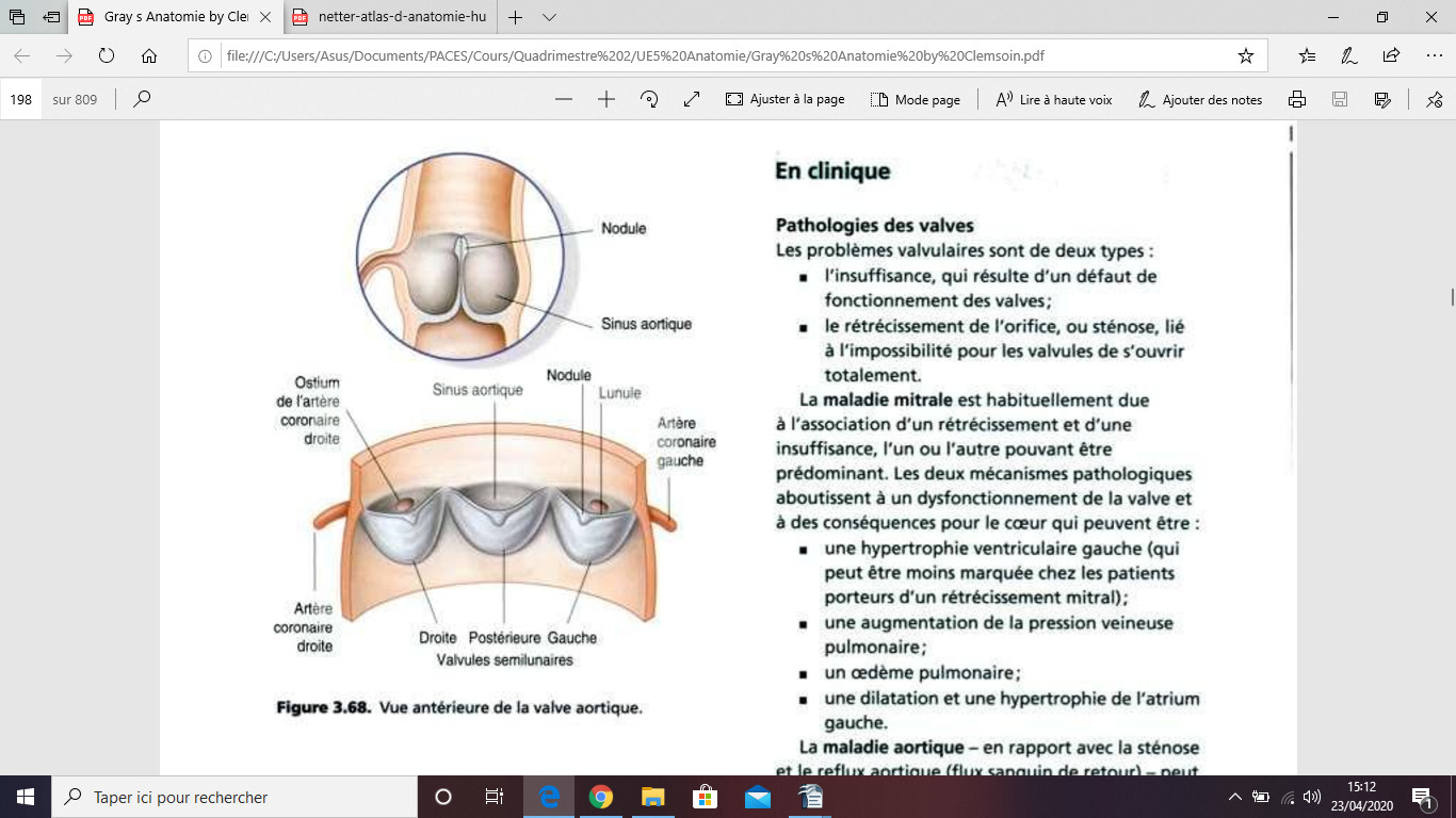 Ancien Responsable Matière lajuxtaposé Posted April 23, 2020 Ancien Responsable Matière Posted April 23, 2020 (edited) Bonjour, Le sinus de l'aorte correspond à une dilatation au niveau antéro-supérieur de l'ostium aortique dans lequel débutent les artères coronaires droite et gauche. L'artère coronaire gauche prend naissance au dessus de la valvule semi lunaire antérieure gauche dans le sinus de l'aorte. L'artère coronaire droite prend naissance au dessus de la valvule semi lunaire antérieure droite. Pour moi les trajets artériels et veineux sont a savoir Bonne journée Edited April 23, 2020 by lajuxtaposé Quote