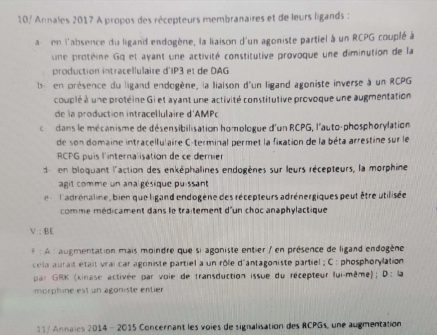 Juliettecolome Posted April 30, 2020 Author Posted April 30, 2020 merci beaucoup @Laulau31!!! juste mdr, c'est déjà plus clair juste… pourquoi « l’activité d’un agoniste partiel ou inverse n’est observable que si le récepteurs présente une activité constitutive mesurable » est compté faux ? c'est parce que un agoniste partiel n'a pas besoin que le récepteur ait une activité constitutive ? et deuxième question, est ce que ca signifie qu'un antagoniste neutre n'a jamais, activité constitutive ou pas du RC, d'effet propre (ou activité intrinsèque)? (parce qu'il va quand même faire stagner l'activité du RC donc il a plus au moins une activité non…?) merci encore ! Quote