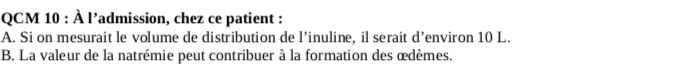 léon-le-bourdon Posted May 4, 2020 Posted May 4, 2020 Dans le sujet 1 du poly de Pâque, il est marqué ceci. A) Lorsque qu'il y'a oedèmes j'ai appris que le VEC augmentait, et ici c'est le cas donc il vaudrait plus de 10 dans la logique non ? B) La natrémie contribue-t-elle à la formation d'oedèmes puisque dans le td il est dit que non. Merci de vos réponses Quote