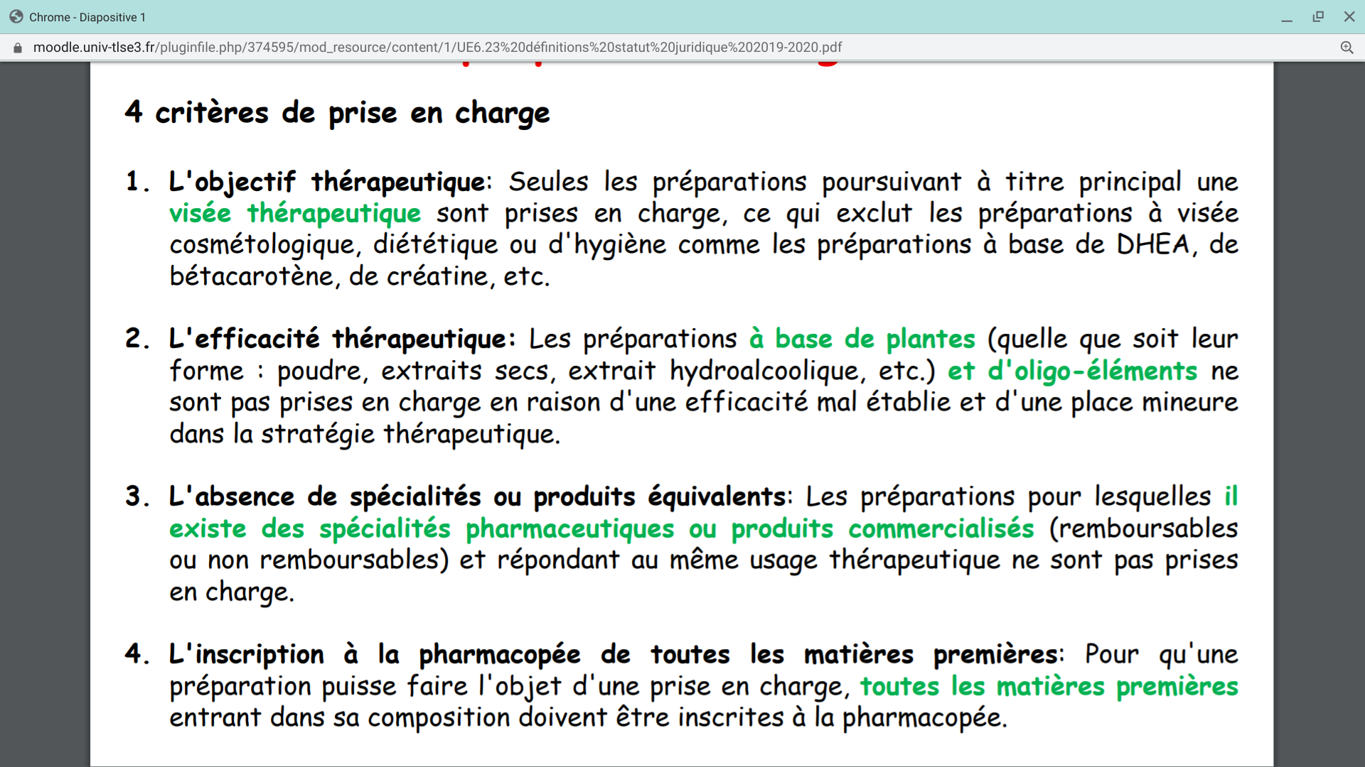 Solution Cookiebean Posted May 5, 2020 Solution Posted May 5, 2020 Coucou! Effectivement, d'après cette diapo les produits utilisés doivent etre inscrits à la pharmacopée pour etre pris en charge par l'assurance maladie.. Les cours peuvent etre modifiés légèrement d'année en année, retiens ce qui a été dit cette année! Après il me semble que dans tous les cas pour qu'un principe actif soit commercialisé en France il faut qu'il soit inscrit à la pharmacopée, donc peut etre que le piège était là... Quote