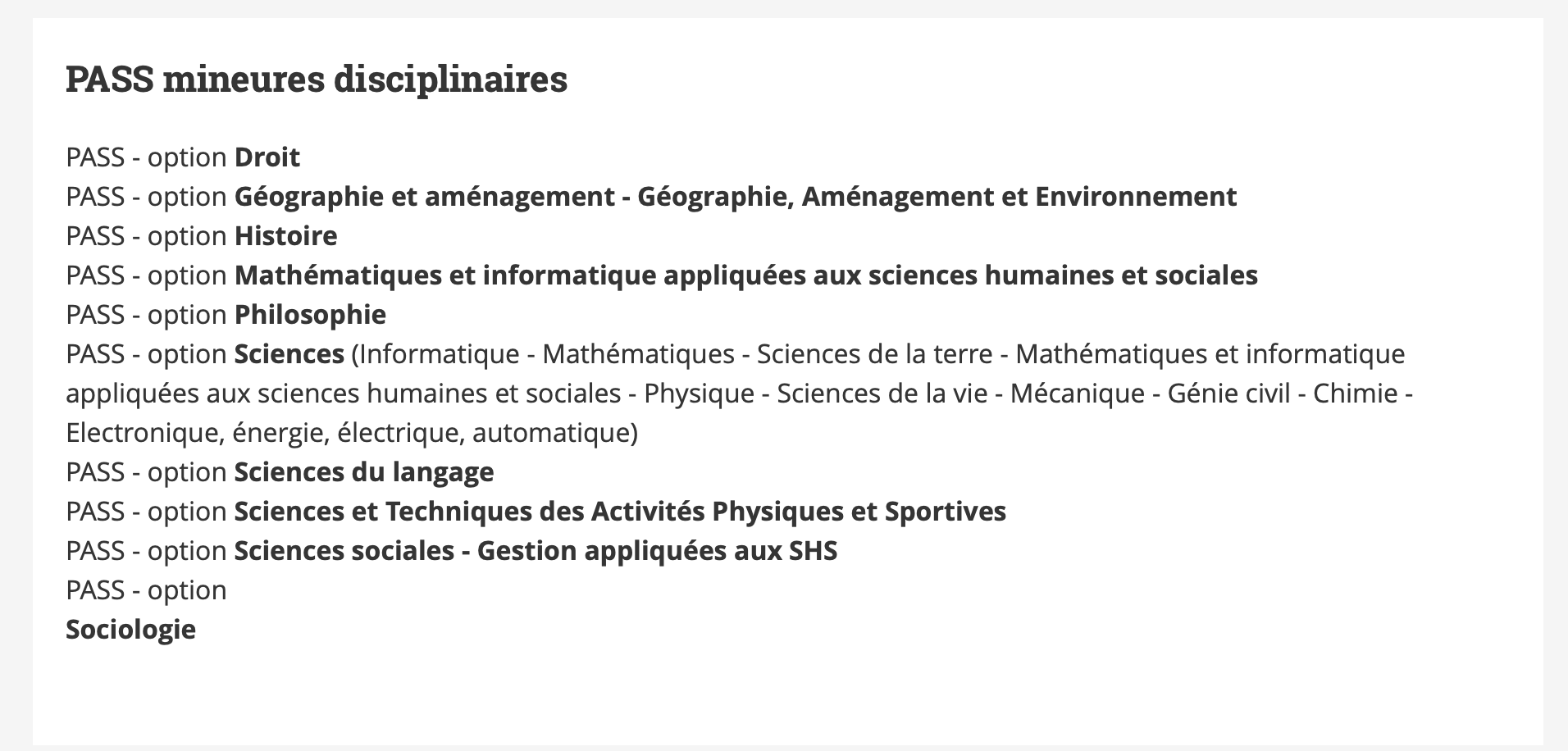 Guest @Hypnos Posted May 21, 2020 Posted May 21, 2020 Il y a 1 heure, Hypnos a dit : salut @EmmaDi alors pour la PASS, tu vas avoir une mineure de ton choix correspondant à 1/6 de ta note permettant d'admissibilité aux oraux qui te permettront ou non d'accéder à la filière de ton choix voici les mineures que tu peux retrouver à Toulouse aucun programme n'a encore été publié que ce soit pour le tronc commun, ou pour les mineures pour ce qui est de la mineure science, tu voit que tu vas avoir un grand choix dans les matières scientifiques (donc si tu pars vers cette mineure, je te conseille de prendre quelques choses qui te plait et dans lequel tu peux bien performer pour te garantir une adminissibilité) n'hésite pas si tu as d'autres questions Mais du coup on est d’accord si je prends science, je devrais sûrement choisir une matière dans tout ce qui est proposé?!