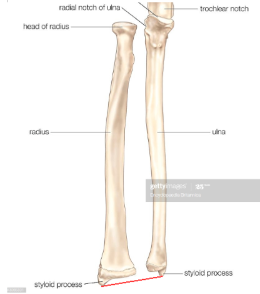 AliceDeNice Posted May 22, 2020 Posted May 22, 2020 (edited) Bonjour @rorovarien! Alors cette ligne est une ligne imaginaire, c'est la droite que tu tracerais si tu voulais relier le processus styloïde du radius à celui de l'ulna (je te l'ai faite en rouge). Le processus styloïde du radius descendant plus bas (donc plus distal) que celui de l'ulna, la ligne sera oblique en proximal et médial. J'espère t'avoir aidé ! oups j'ai pas été assez rapide Edited May 22, 2020 by Alicebrdnt Quote