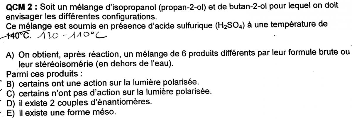 Baptiste Posted December 15, 2014 Posted December 15, 2014 Bonjour, Est ce que quelqu'un peut m'aider à résoudre ce QCM de TD, sachant que les réponses sont toutes vraies. En fait je bloque dès le début du QCM. D'après l'énoncé il semblerait que la réaction soit une déshydratation intramoléculaire, mais je vois pas quels seraient les 6 produits différents énoncés dans l'item A, et donc je bloque pour la suite. Merci d'avance