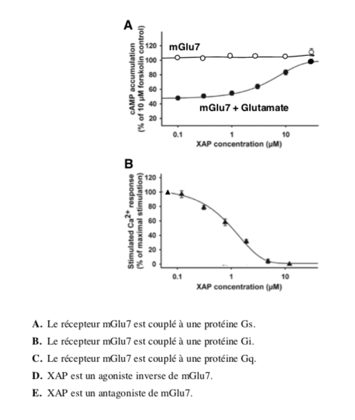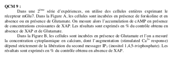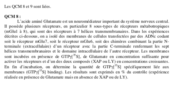 Mariloualb Posted May 26, 2020 Posted May 26, 2020 (edited) bonjour ! j'ai un petit problème avec le cc Purpan 2015 au niveau des QCM 8 et 9, ils sont liés seulement j'ai l'impression qu'il y a une contradiction entre les réponses d'un QCM à l'autre... pour le QCM 8 item B, j'ai regardé les réponses qui avaient déjà été données, qui expliquaient que l'item était probablement faux parce que XAP n'était pas un antagoniste de mGlu7 mais un agoniste inverse puisque la baisse de la liaison du ligand (dans les documents du QCM8) pour mGlu7 descends plus bas que 0% (j'espère que le m'exprime correctement). seulement, au QCM 9 item D faux et E compté juste => XAP est en fait un antagoniste et pas un agoniste inverse. En prenant les QCM et les documents associés séparément, je suis tout a fait d'accord avec les réponses, mais puisque les deux sont liés je trouve ça quand même bizarre une telle contradiction... si quelqu'un arrive à y voir plus clair là dessus pourrait arriver à m'expliquer ce serait super ! merci par avance ! Edited May 26, 2020 by Mariloualb Quote
