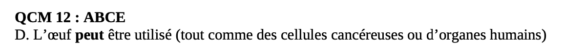 Pour la 12B je pense que tu fais référence aux QCM où il est dit "Pour mettre en évidence le caractère cancérigène d'un virus...." quelque chose dans le genre.