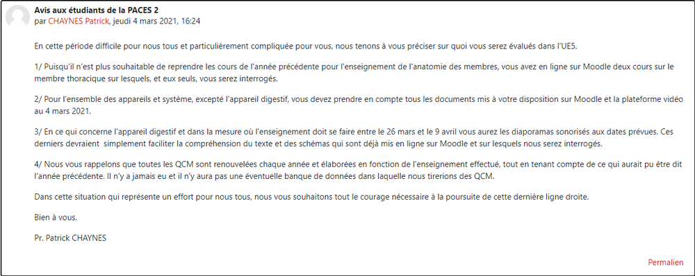AtriumDroit Posted September 9, 2020 Posted September 9, 2020 @MeuhMeuh moi je comprends de son message que 30% des gens dans le NC (toutes filières confondues) sont des doublants.. et les 30% comptés des étudiants TOTAL inscrits en PACES ( cad primants+ doublants) Après j'avoue tout cela est pas trop clair... je crois qu'on va devoir attendre la publication du NC avec des chiffres spécifiques (et surtout aussi les stats de réussite des doublants et primants de cette année..) pour pouvoir mieux analyser tout ça! en tout cas merci beaucoup @MeuhMeuh d'avoir posé la question à Mr Stigliani ( ps: ayant été à Rangueuil je suis épatée qu'on a enfin qqn à qui on peut poser des questions administratives / concernant des cours tout en ayant une réponse aussi rapide- je suis déjà fan de Stigliani ) Au passage: qqn a des news concernant le syllabus ? ils ont pas dit qu'il serait publié au plus tard mardi Quote