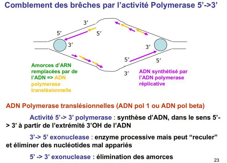 Ancien Responsable Matière melou18 Posted October 14, 2023 Ancien Responsable Matière Posted October 14, 2023 Okay! en gros j'ai regardé dans ce QCM on te parle de l'allongement des télomères par la télomérase en gros ça correspond à ces diapos de cours: Il y a très clairement sur le dessin un ajout de base en 3' de ton brin car tu as une amorce ARN qui s'y fixe pour pouvoir allongé ton brin Quote