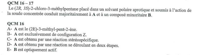 GuillaumeB Posted January 6, 2015 Posted January 6, 2015 Tu as le même exemple dans ton poly .Sinon tu n'as que la configuration Z. Ici c'est une trans-élimination car un on a un mécanisme E2, c'est effectivement stéréospécifique.
