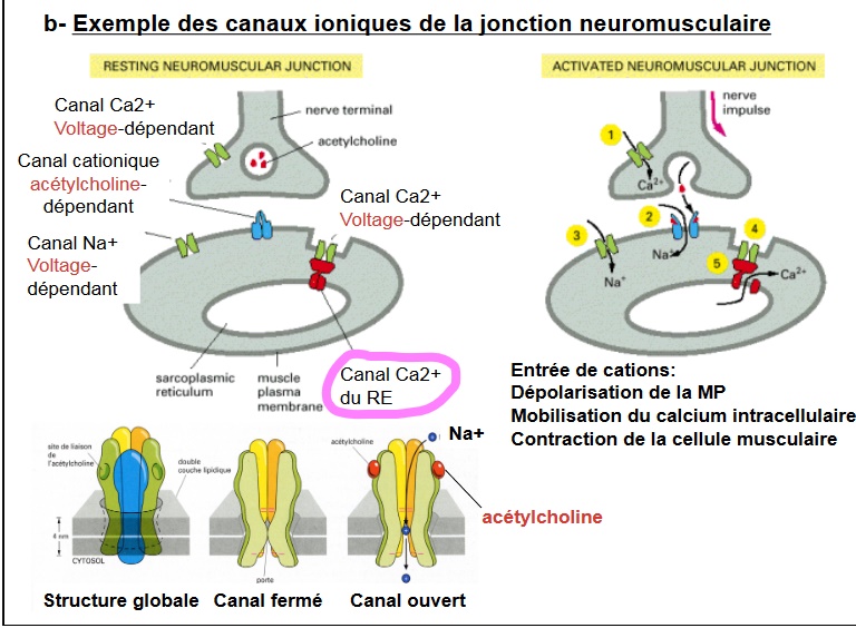 Ancien Responsable Matière Solution Mazlo Posted October 16, 2020 Ancien Responsable Matière Solution Posted October 16, 2020 Saluuuut @OxyGenS ! 1) Pour ton transporteur GLUT, il faut retenir qu'il transporte ton glucose seulement grâce au gradient de concentration, on a pas de "généralité" sur un transport d’extérieur vers intérieur ou le contraire. Il le fait dans un sens et dans l'autre en fonction des concentrations de glucose, et c'est pour cela que ton item est faux. 2) Alors effectivement là, quand on te parle de "comportement", on te parle du fait que les enzymes prennent en charge des substrats, comme les transporteurs protéiques (même si on parle pas de substrats dans leur cas) et que, comme eux, lorsqu'elles atteignent un maximum d'activité il y a un plateau de saturation. On ne te parlait pas du tout de leur fonction; mais c'est vrai que c'était pas très clair... 3) Alooors pour les inhibiteurs des proteines porteuses... D'où vient ton item ? TAT ? CCB ? Parce que le seul moment où l'on parle d'inhibiteurs compétitifs c'est pour le transporteur secondaire du glucose (la ouabaïne). Après ça parait logique qu'il en existe, le Pr. Segui pourrait vous en introduire un dans un QCM exercice, même si vous n'avez rien dans le cours. 4) C'est dans la diapo "Exemple des canaux ioniques de la jonction neuromusculaire" (je sais pas si tu suis avec le poly ^^' je t'ai mis la diapo du coup). Dans cet exemple, sur tes 4 canaux calciques il y en a un (je l'ai entouré en rose) qui est activé par interaction protéine/protéine, et donc non voltage dépendant. Voilà j’espère que mes réponses te conviennent, si quelque chose n'est pas clair n'hésite pas ! Quote