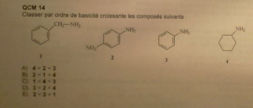 MELANIER Posted January 7, 2015 Posted January 7, 2015 bonjour , quelqu'un pourrait t'il m'expliquer pourquoi , le 4 est plus basique que le 1 ? pour moi l'ordre que j'ai trouvé est 2<4<3<1 puisque le 4 n'a plus les doubles liaison dc il perd sa richesse en électrons NON ?