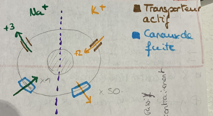 Solution heim Posted November 5, 2020 Solution Posted November 5, 2020 Salut salut, je t'ai mis un dessein d'une grande qualité ( sans commentaire =D) de ce qu'il se passe dans une cellule, avec un coté sodium et l'autre potassium. Ce qu'il faut retenir et après "ça glisse Alice" : 1) On voit que la cellule se "vide" de ses charges "plus" par les transporteurs actifs (Pompes ATPases), elles font sortir 3NA et seulement 2 K rentre MAIS aussi sur les canaux de fuites (passifs) beaucoup plus de K sort que de NA rentre car il y a 50x plus de canaux K que de NA. 2) D'un coté à l'autre de la cellule c'est inversé: Les transporteur actifs font sortir le NA alors que le passage passif (les canaux) les font rentrer, alors que du coté K c est complètement l'inverse. Point clé à comprendre: La subtilité est que le potentiel de membre est de -70 mV au repos car il remonte vers 0, en Valeur Absolue il diminue mais en Valeur réelle il augmente. Les pièges seront essentiellement basés sur ça. Après c'est des mouvements ioniques. Attention dans le QCM: les pompes ATPases travaillent de la même façon. Application à l'item A: Si la concentration intra cell diminue, alors le gradient pour le Na va augmenter, plus de Na va rentrer dans la cellule que d'ordinaire car les canaux passif sur l'augmentation de leur gradients vont faire rentrer du Na en plus. La cellule va se remplir de cation ( charge plus) et en valeur absolue ca va diminuer sa différence de potentiel trans membranaire. Avec le potentiel du NA = plus 60 mV. Rebelle and Odontoboulot 2 Quote