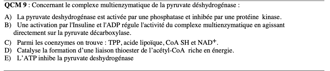 zzzz Posted November 6, 2020 Posted November 6, 2020 Bonjour, l'item C est compté vrai pourtant pour moi l'acide lipoïque est un coenzyme de l'⍺-cétoglutarate Déshydrogénase et non de la Pyruvate Déshydrogénase (pour qui on parle de lipoamide). Pareil pour le CoA SH, il est associé à l'⍺-cétoglutarate Déshydrogénase et pour le Pyruvate Déshydrogénase on parle de Coenzyme A juste non ? Quote