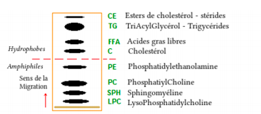 Solution Stabilo_Boss Posted November 8, 2020 Solution Posted November 8, 2020 il y a 2 minutes, DocMaboul a dit : justement je comprends pas parce que Hexadecanol c’est une chaîne de 16 carbones, donc d’où sort le 18 ? 18 c’est Octadécanol Ah oui pardon c'est acide palmitique ! Bon ça ne change rien quand même il y a 3 minutes, DocMaboul a dit : Justement dans le cours on a ce schéma, effectivement les sphingolipides sont plus hydrophiles que les glycérophospholipides, mais il y a aussi les acide gras libre. Et comme L2 apparaît quand L1 est lysé par une PLB, je trouve ça logique de me dire que L2 est un AG libre radioactif issu de L1 En fait tout dépend de ton AG ou de ton sphingolipide. C'est ça qui est compliqué dans les chromato c'est que autant un lysophospholipide et un TAG auront une hydrophobicité très différente autant une sphingomyéline et un AG court c'est proche. En soit oui L2 peut être aussi un acide palmitique, mais ça peut aussi être un sphingolipide (céramide ou sphingoméyline) comme j'avais raisonné. Dans tous les cas tu exclu la vésicule multi-lamellaire que ce soit par ton raisonnement ou par le mien. Tu vois que quand même dans les chromato, il y a beaucoup de spéculations et on ne peut que rarement valider à 100% une hypothèse. Aussi dès que tu vois un item qui dit "Ce lipide est forcément ..." il faut se méfier. C'est pas systématiquement faux mais bon Quote