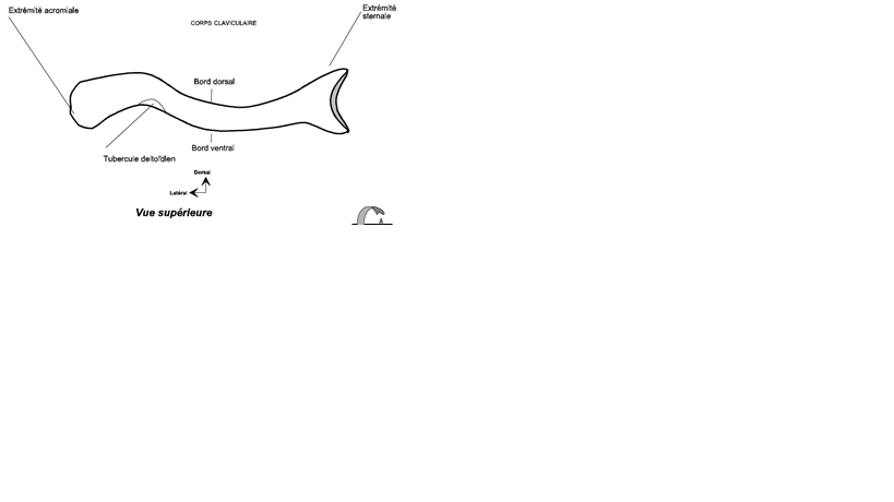 Donc, le bord ventral de la clavicule est convexe en médial (DD) et en avant, et il est concave en latéral (DH) et en AV (on considère le bord ventral, en AV).