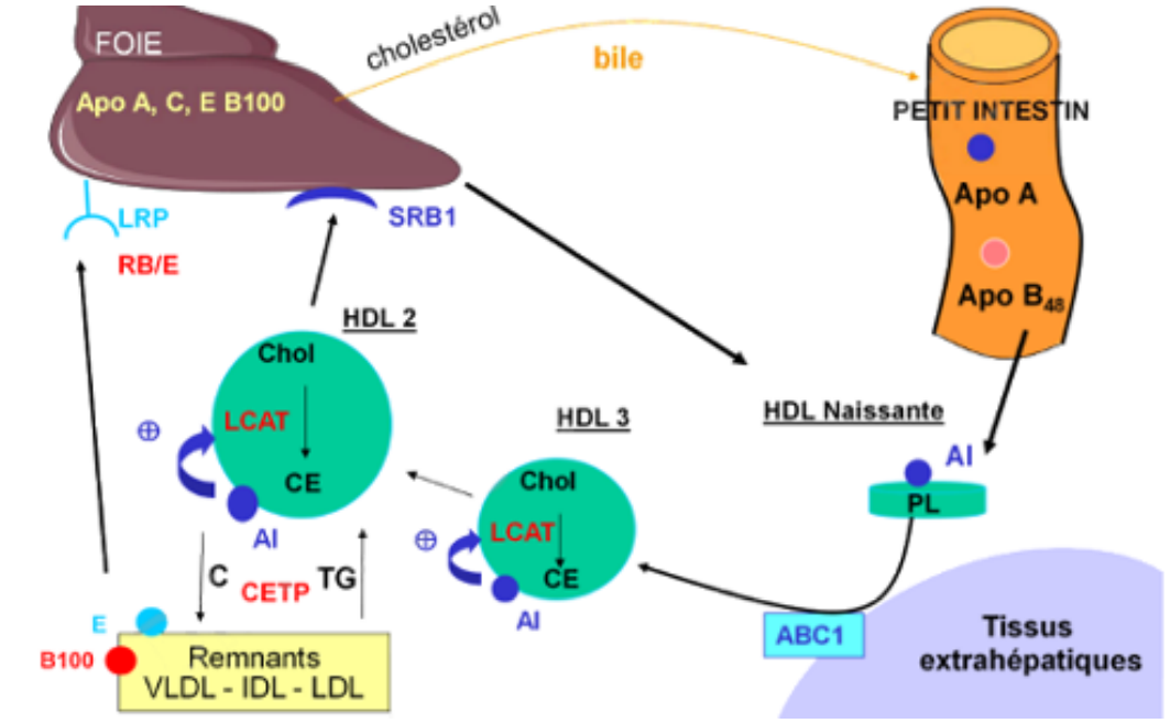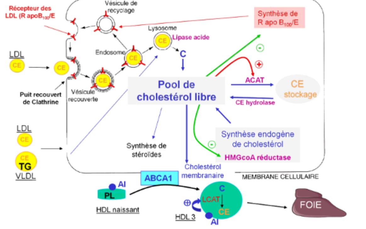 loukoum01 Posted December 23, 2020 Author Posted December 23, 2020 Hello, merci comme à chaque fois pour cette réponse détaillée ! Mais du coup moi j'ai vraiment du mal à comprendre comment, si on a déficit de l'ABCA1, on peut avoir la même quantité de CE dans les HDL ? Vu que les HDL s'approvisionnent par l'ABCA1 en C qui sera donc estérifié par la LCAT ensuite. Du coup si on a un déficit en ABCA1 alors pas de C dans les HDL et donc pas la même quantité de CE dans les HDL sains et ceux du patient ? Désolée... @Pastel je pense que c'est justement le déficit en ABCA1 qui augmente le taux de C libre dans les cellules vu que le C ne peut pas "sortir" pour aller vers les HDL non ? Quote