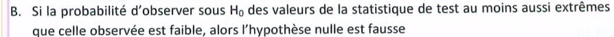 Chat_du_Cheshire Posted December 31, 2020 Posted December 31, 2020 il y a 12 minutes, Lemillion a dit : @Chat_du_Cheshire dsl dernière ptit question l'item est compté faux mais je ne comprends pas pourquoi on obtient une droite verticale donc la sp est tjr maximale mais on peut en faisant varier le seuil rendre la sensibilité maximale non ? + pourquoi ça apporte aucune info sur la présence ou l'abscence de la maladie ? une dernière pour qui veut ahaha pourquoi est-ce faux ? Alors la première ya une erreur dans l'énoncé , en réalité c'était une diagonale ! Donc A et E faux Et la seconde on peut jamais dire que H0 ou H1 est vraie/fausse Donc si p est faible H0 perd de sa crédibilité mais tu peux pas dire qu'elle est fausse Quote
