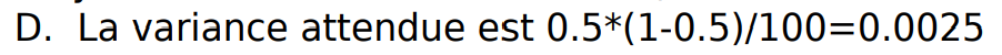 Hibou Posted January 4, 2021 Posted January 4, 2021 Bonjour, https://zupimages.net/viewer.php?id=21/01/6mvh.png ici j'ai fais V= np(1-p) = 100*0.5*(1-0.5) = 25; ils utilisent la même formule mais en divisant par 100 au lieu de multiplier, je rate quoi ? QCM4A https://zupimages.net/viewer.php?id=21/01/187l.png https://zupimages.net/viewer.php?id=21/01/n3gl.png je suis ok avec l'encadrement effectué, cependant je me demande pourquoi commencer à étudier à partir de pi/2 3pi/2 et non pas sur -pi/2 pi/2 --> 0< cos < 1 par exemple ? Merci par avance Quote