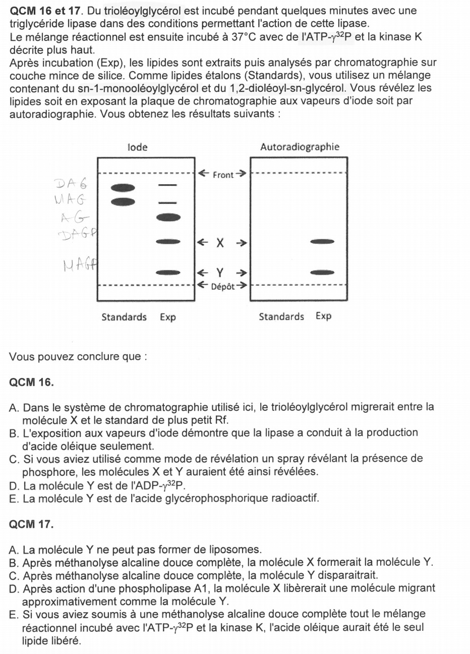 Ancien Responsable Matière El_Zorro Posted January 8, 2021 Ancien Responsable Matière Posted January 8, 2021 Salut @Neutrino11 ! Tu connais l'action de la kinase K de l'exercice ? Sur la ligne ou il est noté "AG", c'est sûrement de l'acide oléique libéré par l'action de la TGL Quote