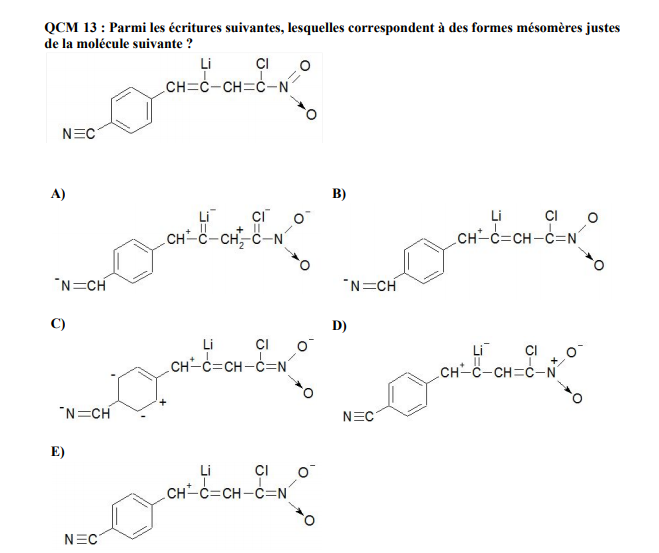Solution Croziflette_Claquette Posted January 18, 2021 Solution Posted January 18, 2021 Le 16/01/2021 à 13:35, jean a dit : bonjour je ne comprend pas pourquoi le D est compté juste : merci à celle/celui qui pourra m'aider Salut! C'est à quel endroit que tu bloques? A droite l'oxygène récupère le doublet donc négatif et l'azote devient positif Pour le lithium le doublet se délocalise le lithium devient négatif et le carbone devient carbocation à 3 liaisons donc positif. Quote