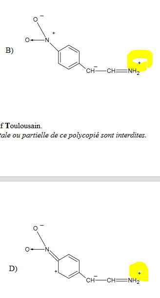 Ancien Responsable Matière Herlock Posted January 21, 2021 Ancien Responsable Matière Posted January 21, 2021 il y a 22 minutes, lorinne a dit : dans ces molécules, je ne comprends pas pourquoi il y a un + sur le N car pour moi le plus ça veut dire qu'il y a une place de libre sauf que le N ne peut pas se lier à 5 atomes.... Le plus indique qu'il a perdu un électron, si tu reviens à la configuration de départ du N, N a 7 électrons : , on voit qu'il peut faire 3 liaisons mais s'il on l'hybride on peut obtenir 5 liaisons soit : d'où je pense que c'est possible ! Quote