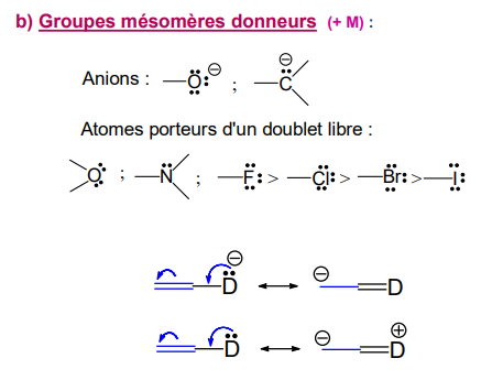 Solution oceqne Posted February 3, 2021 Solution Posted February 3, 2021 (edited) Hello ! Alors : + M ce sont les anions, et les atomes porteurs d'un doublet-non liant (comme les halogènes par ex). - M ce sont ceux qui ont une case quantique vacante. L'effet -M se retrouve aussi avec des groupements qui font des délocalisation des électrons pi orientée (comme par ex, un C double liaison O, et ce groupement serait conjugué avec une autre double liaison). Après c'est pas mal d'apprendre les groupements par coeur (en général c'est toujours les mêmes qui reviennent aux examens), je cherche les diapos et je te les poste! Edit, voici les diapos, en espérant que ça puisse t'illustrer mes propos! Edited February 3, 2021 by oceqne microtubulou and Paul__onium 1 1 Quote
