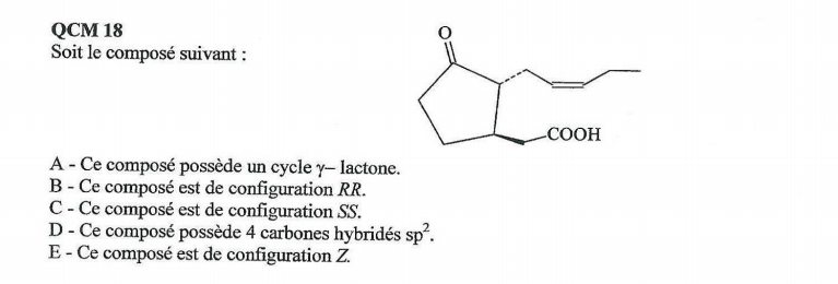 Quentin1832 Posted March 6, 2021 Posted March 6, 2021 D'où vient ton QCM? Parce que moi je trouve SR respectivement en haut et en bas. il y a 9 minutes, reyerika a dit : mais en fait comme on ne sait pas vers ou va l'H des C je ne sais pas comment faire pour trouver la configuration En fait pour ton carbone asymétrique en haut de ta molécule, tu vois que le radical est en arrière donc ton H est en avant donc tu prends l'inverse de ce que tu vois au premier abord et tu trouves S. Quote