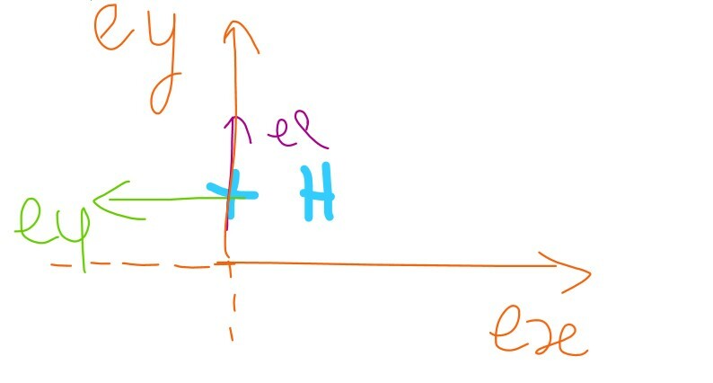 sana1515 Posted March 26, 2021 Author Posted March 26, 2021 il y a 6 minutes, Tartiflemme a dit : ok j'essaie de faire une explication plus claire :)) @sana1515 tracer le graphique avec les axes x, y et z ton point H a pour coordonnées (0;1;0), il n'a une cordonnée non nulle que selon y. ça veut dire que tu n'a pas besoin de faire un schéma en 3D. Donc tu peux faire un dessin selon x et y. tu dois tracer disons x aux abscisses et y aux ordonnées placer le point H une fois que tu as ton dessin, tu places ton point H : abscisse = 0 et ordonnée = 1 rajouter rho et phi rho est dirigé dans le sens de OH, donc tu dois tracer rho dans le même sens que y phi est perpendiculaire à rho, donc tu dois tracer phi perpendiculairement à rho (et aussi a y du coup) identifier l'axe z maintenant, tu as ton graphique complet, mais pour qu'il soit nickel nickel, tu dois savoir où se trouve l'axe z pour pouvoir répondre aux questions. Les axes x,y, et z sont perpendiculaires => alors l'axe Z correspond à ce que je t'ai dit plus haut "tu mets ton crayon perpendiculaire à ta feuille et ça te donne l'axe z" l'axe z "sort" en quelque sorte de la feuille, puisque à partir du moment où tu as 3 axes, ton dessin est en 3D répondre aux items pour qu'une base soit une BOND, les 3 vecteurs de la base doivent être perpendiculaires et surtout pas parallèles !!!! du coup je reprends mon exemple, , donc ils sont parallèles et ne formeront JAMAIS une BOND. j'espère que c'est mieux ! mais si jamais hésite pas !! Alors j'ai fait le schéma mais plus haut tu a dit que phi est perpendiculaire à rho donc il serait dans le sens de x comment il pourrait être dans le même sens que y ? Quote