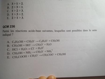 Alice Posted August 20, 2015 Author Posted August 20, 2015 Ok pour B et C mais pour E comme tu dis que les acides carboniques sont des acides faibles la réaction ne devrait pas se faire dans ce sens là alors non ? Merci beaucoup en tout cas d'avoir pris le temps de répondre !!