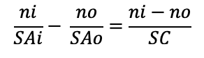 \frac{ni}{SAi} = \frac{ni-no}{SC} + \frac{no}{SAo}     <=>    \frac{ni}{SAi} = \frac{(ni-no)SAo + no.SC}{SC.SAo}       <=>         \frac{SAi}{ni} = \frac{SC.SAo}{(ni-no)SAo + no.SC}         <=>       SAi= \frac{SC.SAo.ni}{(ni-no)SAo + no.SC}
