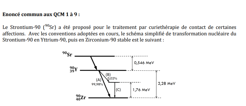 unePASSionnée Posted October 27, 2021 Author Posted October 27, 2021 Cc! Merci bcp pour ta réponse. Je crois c'est toujours d'actualité pcq c'est les annales que Pr Gantet met à la fin de son poly. Si je comprends bien la lettre B c'est le rayonnement gamma ? mais un rayonnement gamma est toujours symbolisé par une flèche verticale dans ce cas la lettre C (si j'ai bien compris le cours). je comprends pas tout à fait ta réponse J'ai compris que c'est une beta moins avec désexcitation du noyau fils par l'émission d'un rayonnement gamma mais comment interpréter le schéma je vois pas. Quote