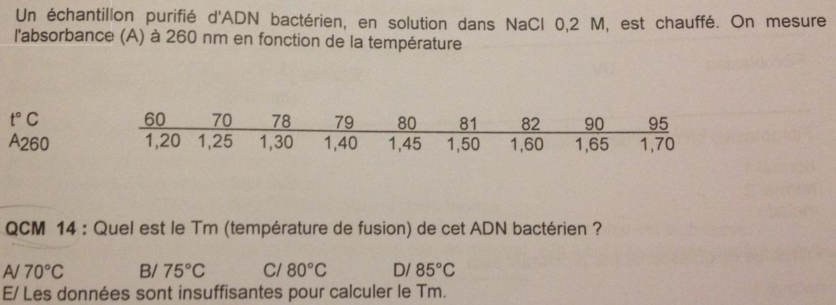 On sait que l'ADN absorbe spécifiquement à 260nm et qu'au passage du point de fusion la densité optique augmente fortement.