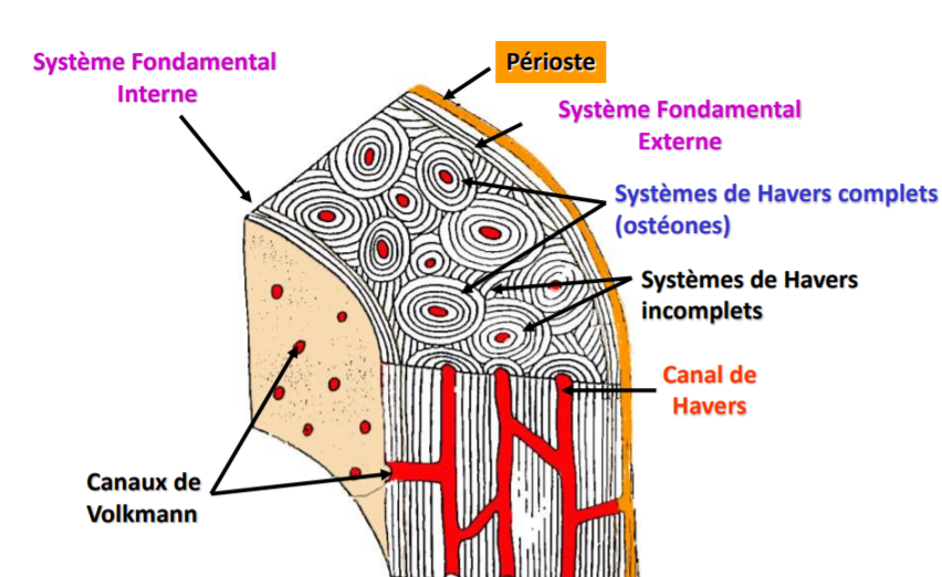TheoPF Posted November 12, 2021 Author Posted November 12, 2021 il y a 11 minutes, Calimera a dit : Salut @TheoPF! Les lamelles circonférentielles externes (qui correspondent au système fondamental externe sur le schéma) sont situées autour de l'os. Les lamelles circonférentielles internes (qui correspondent au système fondamental interne sur le schéma) sont situées autour de la cavité médullaire de l'os. Le mieux pour comprendre c'est ce petit schéma : Ca a répondu à ta question @TheoPF ? Ah bah oui ça se tient, merci bcp! Calimera 1 Quote