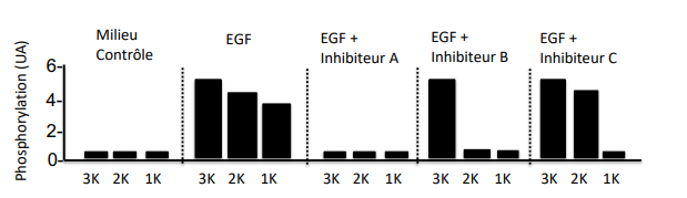 Ancien Responsable Matière Solution fée_cloclochette Posted November 21, 2021 Ancien Responsable Matière Solution Posted November 21, 2021 Alors : - QCM 5 item D : pour moi il est VRAI : parce que tu as normalement vu en cours que ta mitochondrie participe au catabolisme des acides gras mais avec un petit nombre de carbone je crois que c'est < 20 carbone, (je ne suis pas du tout sure du nombre) mais du coup ça explique pourquoi le catabolisme mitochondrial de ces acides gras est normal, vu que tu ne vois pas une augmentation de la concentration intracellulaire en acide gras, donc c'est NORMAL - QCM 7 item E : je dirai VRAI : je te remet le graphe La fluorescence que tu vois correspond donc à la localisation de ta protéine dans le noyau, Tu vois qu'en absence de leptomycine B tu as 50% de ta protéine qui est localisée dans ton noyau : l'hypothèse que tu dois avoir du coup c'est que tu as tes 50% restant dans le cytoplasme ! Et en présence de leptomycine B tu as 100% de ta protéine qui est localisée dans le noyau ! D'ou ton item E, une exportine ça sert a faire sortir de ton noyau, donc vu que la tu vois que tu as 100% dans ton noyau tu as surement un problème au niveau d'une exportine qui exporte ta protéine vers le cytoplasme, donc l'item E est vrai est ce que mon explication est claire ? - QCM 9 item D : encore une fois VRAI ? Ce qui est hyper important dans ce genre de QCM c'est que tu te résumes l'énoncé pour pouvoir ensuite analyser ton schéma : donc allons-y : tu as des fibroblastes qui sont incubés avec ou sans LPA c'est tes deux bâtons a gauches, puis tu rajoutes un inhibiteur de la GTPase Rho A, pour pouvoir faire la différence tu regardes tes 4 bâtons, tes deux bâtons à gauche sont sans inhibiteurs et tes deux bâtons a droite sont avec inhibiteurs. En présence de LPA tu as une augmentation de tes fibres de stress (deuxième bâton), et lorsque que tu as à la fois LPA et ton inhibiteur de Rho A tu as également une augmentation de tes fibres de stress mais beaucoup beaucoup moins, et tu vois que lorsque tu n'as pas de LPA mais que tu as ton inhibiteur de Rho A tu as la même quantité de fibres de stress que lorsque que tu n'as n'y LPA ni Rho A. L'item de demande si tu peux supposer que LPA active Rho A du coup tu remarques bien que lorsque tu as LPA + ton inhibiteur de Rho A tu as bien une différence tu peux donc suggéré qu'il l'active, est ce que ça te parait clair ou pas du tout ? - QCM 10 item A : Je dirai FAUX : parce que la thymidine tritiée est un intercalant de l'ADN et non pas un marqueur des cellules pour moi mais j'avoue que je suis pas certaine certaine - QCM 15 item A : en présence d'insuline = carré noir sans insuline = carré blanc +++ dose croissante d'un analogue de glucose --> tu mesures la vitesse du transport intracellulaire Ce que tu dois savoir c'est qu'une diffusion simple sur un schéma va être représenté par une droite, qui ne sera pas saturable, la tu as des courbes qui sont saturable. Je te montre à quoi devrait ressembler une diffusion simple juste après : donc la pour ton item A ils te demandent si en absence d'insuline = carrés blanc tu as un transport par diffusion simple : au vu de la courbe que tu as c'est donc FAUX - QCM 15 item B : tu dois savoir que le glucose (c'est écrit dans ton cours) se fait via transport passif facilité via les GLUT. Donc ton item B est forcément FAUX, vu que tu n'as pas un transport ACTIF mais PASSIF. du coup pour la petite explication, transport simple = c'est sans aide, c'est surtout pour tous ce qui est gaz ou les toutes petites protéines ils diffusent tout seul, ils ont pas besoin d'énergie ou de quoi que ce soit. et pour le transport passif ou facilité (enfait c'est la même chose) : tu as l'utilisations par exemple d'une protéine qui va facilité le passage par exemple de tes ions dans le sens de leurs gradients de concentrations (mais ils ont besoin d'être un peu aidés) - QCM 16 item B : La voie des MAPK active (via phosphorylation) MAPK, MAPKK, et MAPKKK. Tu incubes des kératinocytes avec ou sans EGF (tu te sers donc de ton milieu controle (sans EGF) et puis après en rajoutant ton EGF. Tu sais que ton inhibiteur A : inhibe les MAPKKK Ton inhibiteur B : inhibe les MAPKK et ton inhibiteur C : inhibe les MAPK Sur ton schéma, tu observes la phosphorylations de tes différentes MAP Tu vois donc que grâce à ton EGF tu as la phosphorylation de toutes tes MAP, et comme tu te rappelles très bien de ton cours tu sais que la voie des MAPK est une voie qui se fait en cascade tu cherches à savoir si tes MAPKK (2K) phosphorylent les MAPKKK (3K) donc premièrement tu regardes si en présence de l'inhibiteur de MAPKK (2K) qi est l'inhibiteur B tu as une phosphorylation de MAPKKK (3K) : tu vois donc qu'elles sont bien phosphorylées tu peux donc déjà conclure que ce n'est pas les MAPKK (2K) qui phosphoryle les MAPKKK (3K) vu que lorsqu'elles sont inhibées la phosphorylation des MAPKKK (3K) n'est pas altérée Ton item B est donc FAUX ! Voilà après cette longue période de réflexion j'espère avoir pu t'aider un maximum !! Je t'envoie pleins de poussières de fée pour que tu puisses t'envoler encore plus haut DrFail, FabienDespascito and Dr31100 1 2 Quote