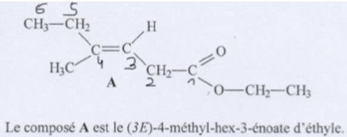 Solution lilarsenic Posted March 15, 2022 Solution Posted March 15, 2022 Coucou @Claramnioblaste ! Je t'ai numéroté la chaîne carbonée, est-ce que c'est plus clair pour toi ? N'oublie pas que le carbone qui porte la fonction (ici l'ester) doit être en 1 et ensuite, tu numérotes le reste par rapport à ça. Du coup, le numéro 3 porte bien une double liaison d'où le 3E et le "3-ène...", je sais pas si c'est ça qui te posait soucis ? Baymax and Claramnioblaste 1 1 Quote