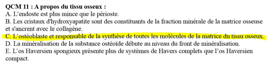 Solution InesK Posted December 13, 2015 Solution Posted December 13, 2015 Bonjour, Désolé pour la réponse un peu tardive ! Alors non ce n'est pas un errata, c'est bien le tissu osseux qui a un rôle métabolique étant donné que c'est un réservoir de sels minéraux de l’organisme et qu'il joue un rôle dans le métabolisme phosphocalcique. Ensuite, oui les ostéocytes sont aussi responsables avec les ostéoblastes d'élaborer la matrice extracellulaire, mais c'est bien les ostéoblastes qui permettent la synthèse des molécules de la matrice. Bon week-end