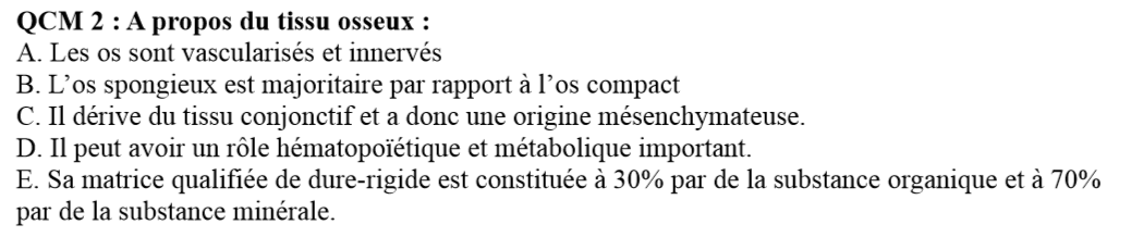 joke_bauer Posted December 11, 2015 Posted December 11, 2015 Bonjour à tous, L'item D de ce QCM est compté vrai, pourtant il me semblait que la fonction hématopoïétique concerne l'organe os et pas le tissu osseux. Qu'en pensez vous ? En outre, une petite question concernant l'item C du QCM 11 : l'ostéocyte ne synthétise pas de molécule de la matrice ? Merci d'avance Bonne révisions à tous ! (désolé pour la faute d'ortographe au titre, pas fait exprès )