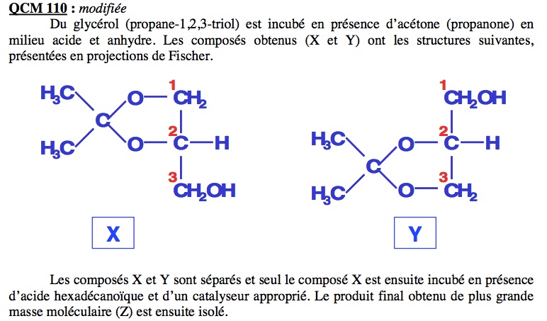 Benoitroustan Posted November 23, 2013 Posted November 23, 2013 Bonjour! Voilà l'énoncé du QCM en pièce jointe. A : Les composés X et Y sont des éthers-oxydes possédant en outre une fonction alcool E : L'hydrolyse du composé Z, dans des conditions acides douces, génère un ester possédant en outre deux fonctions alcools. L'item A est marqué faux. Du coup c'est un alcool possédant des "fonctions ethers-oxydes" (si ça existe...)? L'item E est marqué vrai mais je n'arrive pas à comprendre comment on trouve ce résultat. Merci de votre réponse. bonne journée.