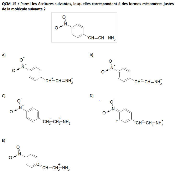 Salut! Pour moi l'item C est archi fauxxx, dans un effet mésomère tu peux pas avoir l'apparition ou la disparition d'un atome donc les hydrogènes qui vont se lier aux 2 C c'est du à une hydrogénation catalytique (de mémoire) qui est une réaction donc PAS DU TOUT MESOMERE