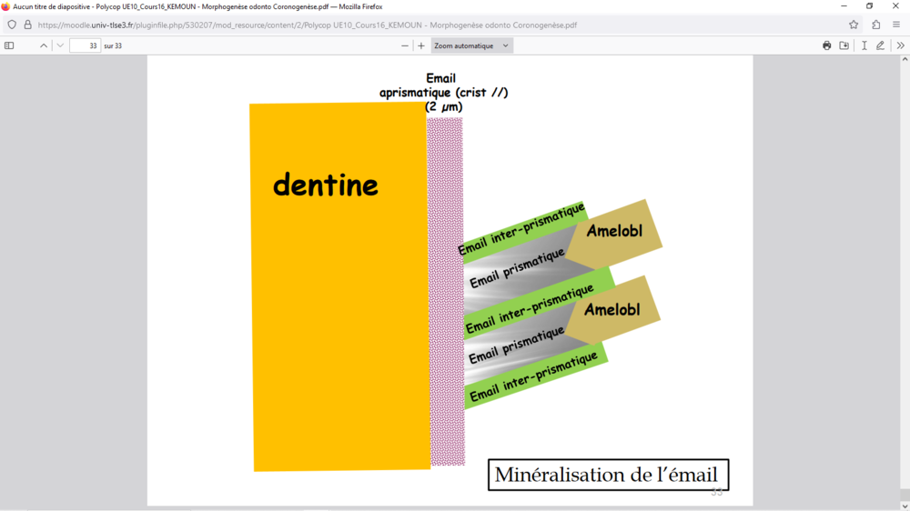 Annémie Posted March 13, 2023 Posted March 13, 2023 Il y a 10 heures, Mick a dit : bonjour, pour le sujet 3: Item B QCM 22: le prof a spécifié que dans l'émail aprismatique il n'y avait pas d'organisation et donc que les cristaux n'étaient pas parallèles entre eux donc l'item devrait être faux merci pour la réponse Salut ! L'émail aprismatique est composé de cristaux parallèles entre eux au niveau des deux premiers micromètres. Je te remet la diapo du Pr Kemoun et tu peux voir tout en haut que c'est bien spécifié : Quote