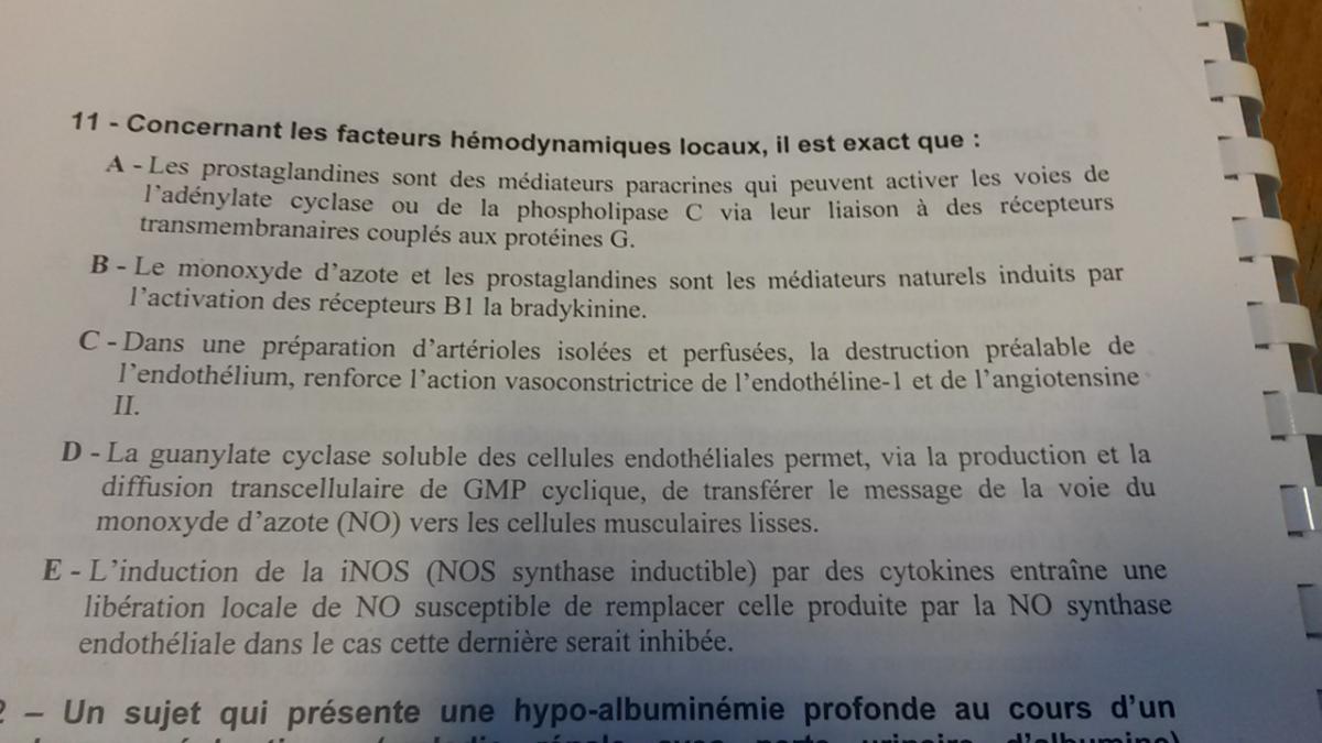 Solution Lcal Posted February 17, 2016 Solution Posted February 17, 2016 la b c'est textuellement la diapo du profla d : le GMPc ne diffuse pas en transcellulaire la e : il me semble pas qu'il y ait de retrocontrole négatif sur les NOsynthase, donc c'est pas pcq la iNos va produire du NO que la eNos va être inhibée