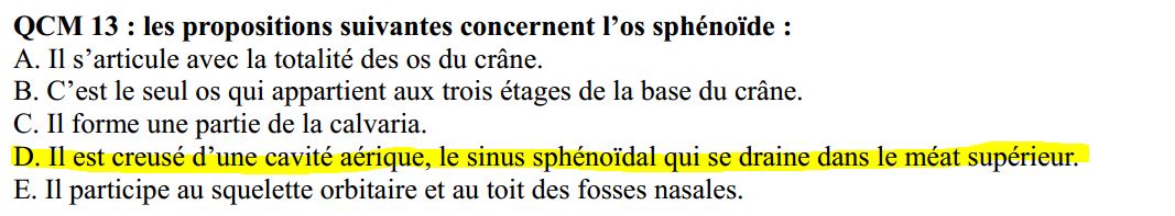 joke_bauer Posted February 17, 2016 Posted February 17, 2016 Bonjour à tous ! Cet item D d'un QCM du tat est corrigé vrai. Or, le prof avait bien insisté pour dire que le sinus sphénoïdien ne se drainait dans aucun méat... Quelqu'un pourrait m'expliquer la correction ? Merci d'avance !