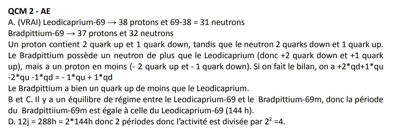 lana2 Posted February 28, 2023 Posted February 28, 2023 Bonjour, j'ai un petit problème concernant l'équilibre de régime. Il me semble avoir compris que cela se produisait quand la période du père >> Période du fils. Donc ici entre le leodicaprium-69 et le Bradpittium-69m le père est bien le Bradpittium-69m du fait de sa plus grande masse. Ainsi on la période du père (6h) << a celle du fils (127h) ce qui veut dire que l'on est pas dans un équilibre de régime mais plutôt dans un équilibre spéculaire non ? La correction dit le contraire... Si vous pouvez m'éclairez... Merci beaucoup Quote