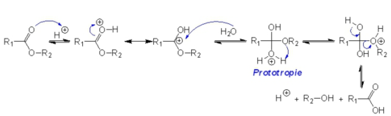 Solution Pucca Posted March 12, 2023 Solution Posted March 12, 2023 il y a 11 minutes, ArtiPasChaud a dit : Merci beaucoup !! Je suis désolé mais j'ai encore quelques question ^^' , Pour l'hydrolyse acide, le OH du groupe carbox , est-ce qu'il vient de H2O ? qui a donné H+ et OH- Avec plaisir, et oui en qq sorte mais il a pas vraiment donné H+ et OH-, je te mets un schéma qui détaille tout que j'ai trouvé sur internet. Après c'est pour comprendre ce qui se passe mais honnêtement pas besoin même de le savoir, retiens surtout que tu peux passer d'un ester à un ac. cabox + alcool par hydrolyse acide. il y a 13 minutes, ArtiPasChaud a dit : Et j'ai un peu la même question pour l'alcool du coup mais pour son OH Pour passer de la cétone à l'alcool là oui par contre c'est bien H2O qui s'est décomposé en H+ et OH- et le H+ qui est venu se brancher sur le O déjà présent. Fabulo 1 Quote