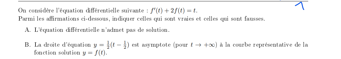 Solution futurmedecinaskip Posted March 22, 2023 Solution Posted March 22, 2023 j'ai fais lim (f(t)-y) quand t tend vers +l'infini =0 tu remplaces par ton f(t) et par ton y et tu trouves bien 0 c'est pour ça que c'est vrai Quote