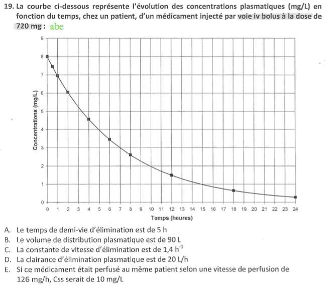 Jessief Posted March 30, 2016 Author Posted March 30, 2016 Merci pour les réponses, mais je me pose encore des questions... -photo 1-C: pourquoi alors avoir proposé 300mg au lieu de 250? je trouve que c'est une grande différence quand meme pour mettre vrai à l'item... -photo 2-E: j'avais pensé à cette formule pour calculer Vd mais je me retrouve encore avec une inconnue, Cl, que je ne sais non plus déterminer graphiquement ou calculer (dose/ASC)... -photo 3: je ne sais plus de quelle annale je l'ai tirée mais ce dont je me rappelle c'est que tous les items étaient faux sauf la valeur de T1/2.. du coup on avait aucun autre paramètre - Pour 4 et 5, merci beaucoup, j'ai bien compris