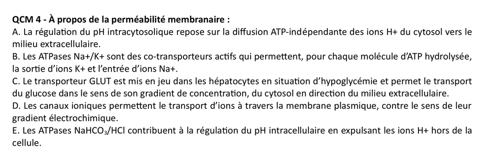 kriss_la_krass Posted November 27, 2023 Posted November 27, 2023 Salut! J'ai un pb avec un item A. Les molécules chargées, comme les ions par exemple, ne traversent pas la membrane plasmique par diffusion simple. La correction dit que c'est faux car: A. Ils traversent par transport passif aussi appelé diffusion facilitée. Mais je comprends pas pk c'est compté faux pcq justement la diffusion simple et la diffusion facilitée c'est différent non? Quote