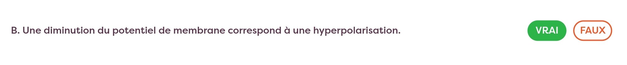 la_myaALGIE Posted November 26, 2023 Posted November 26, 2023 (edited) Bonjourrr, alors j’ai un gros problème avec la notion d’augmentation et de diminution du potentiel de membrane comme on peut le voir qur ce QCM la. Je ne comprends pas s’il faut parler en valeur absolu ou pas, et en plus j’ai l’impression que la synthèse (qui est dans le pack de poly) va à l’encontre de ce qui est dit dans le QCM, Brefff je suis perdu !!! https://zupimages.net/viewer.php?id=23/47/1190.jpg https://zupimages.net/viewer.php?id=23/47/t7ok.jpg https://zupimages.net/viewer.php?id=23/47/qztm.jpg Donc es ce que quand on nous demande pour une augmentation du potentiel d’action, c’est + positif ou + négatif ( en fonction de si on prend la valeur absolu) Mercii !! il y a aussi ce QCM la, il est compter faux car "Une diminution du potentiel de membrane va rendre le potentiel moins négatif donc correspond à une dépolarisation. Une hyperpolarisation est une augmentation du potentiel de membrane donc plus négatif." Edited November 26, 2023 by lamyae_nucléaire Gaétang 1 Quote