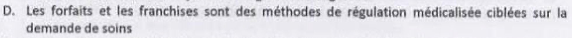 Solution nanouchka Posted December 6, 2023 Solution Posted December 6, 2023 Salut @juju7, Je pense qu'ici l'erreur vient de la première partie de l'item: "les forfaits et les franchises sont des méthodes de régulation médicalisée". Il me semble que cette formulation porte à croire que les forfaits et franchises seraient exclusivement des méthodes de régulation médicalisée. Or si tu regardes ton diapo, il s'agit plutôt d'une régulation budgétaire selon le code couleur noir, voire alternative entre budgétaire et médicalisée, mais ça n'est pas exclusivement une régulation médicalisée. C'est donc ce qui rendrait l'item faux parce que le reste de la phrase "ciblées sur la demande de soins" me parait juste. Dis moi si tu es d'accord ou si tu vois les choses autrement, mais pour l'instant c'est la seule explication que je trouve Naykami, Eli-coptère and quésako 2 1 Quote