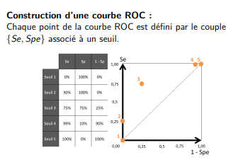 Ancien Responsable Matière Solution Dragoon Posted December 12, 2023 Ancien Responsable Matière Solution Posted December 12, 2023 Hello @laurethodontiesvp ! Alors la courbe ROC c'est une courbe construite à partir des valeurs de sensibilité et de spécificité d'un test diagnostique. Chaque courbe est spécifique d'un test et permet de connaitre son efficacité générale. La construction de la courbe est faites à partir de couples (Se;Spe) à différents seuils (un seuil de 0 aura une sensibilité de 100% et une spécificité de 0%, seuil de 100 aura une spécificité de 100% et une sensibilité de 0%, pour toute valeur de seuil entre 0 et 100, on aura donc des couples Se,Spe avec différent pourcentages qui dessinent une courbe) Ainsi on peut comparer des tests diagnostiques entre eux grâce à leurs courbes ROC : En fait, pour un test diagnostique, l'idée pour améliorer son efficacité est de maximiser la spécificité et la sensibilité ensemble, car augmenter trop l'un diminuera l'autre. Donc le meilleur test diagnostique sera celui ou on peut maximiser les deux sans les diminuer entre eux, et on voit facilement grâce à une courbe ROC quel test fait cela le mieux, grâce à l'aire sous la courbe. Dans l'image, on voit bien que la courbe du test B peut aller chercher des couples (Se,Spe) bien plus importants que le test A. On cherchera toujours à rapprocher l'aire sous la courbe de 1, car cela voudrait dire qu'on pourrait avoir une sensibilité et une spécificité de 100 % chacun en même temps, là où une aire sous la courbe de 0,5 sera le signe d'un test avec une efficacité inexistante. Voilà j'espère avoir répondu à ta question, hésites pas si ce n'est toujours pas clair ! Quote